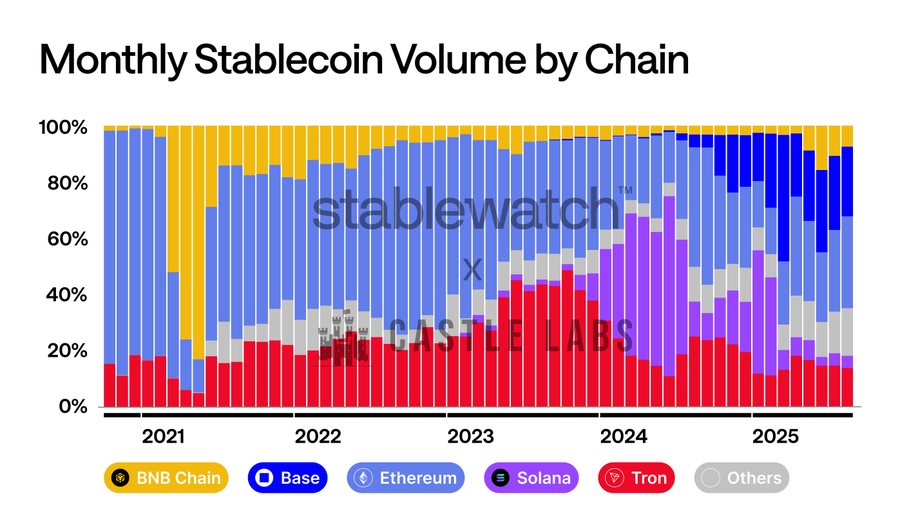 稳定币正在2025年的头条新闻中占据主导地位。这让我们不禁要问,哪个区块链网络将承载并促进这一资产类别?随着代币化美元继续被越来越多地接受和监管,六个即将推出的Layer 1区块链正寻求加入竞争,与以太坊、波场、Solana 和 Base 等成熟的稳定币网络展开竞争。