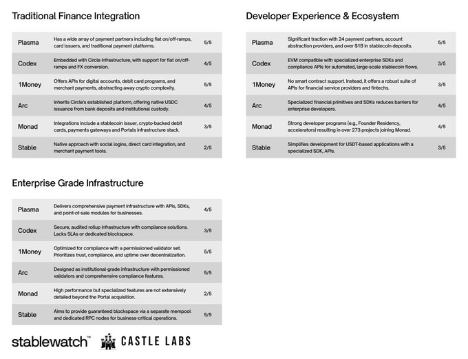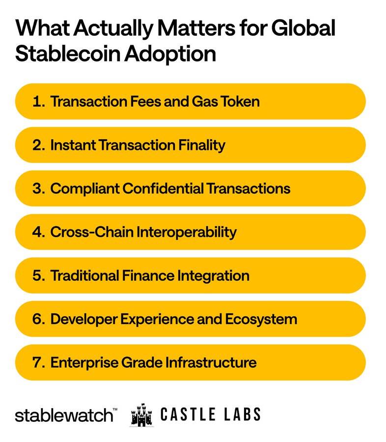 这些用户不太关心理念和去中心化,他们更关心解决实际问题。因此,成功的稳定币基础设施必须在直接影响用户体验和经济可行性的特定标准上表现出色。
