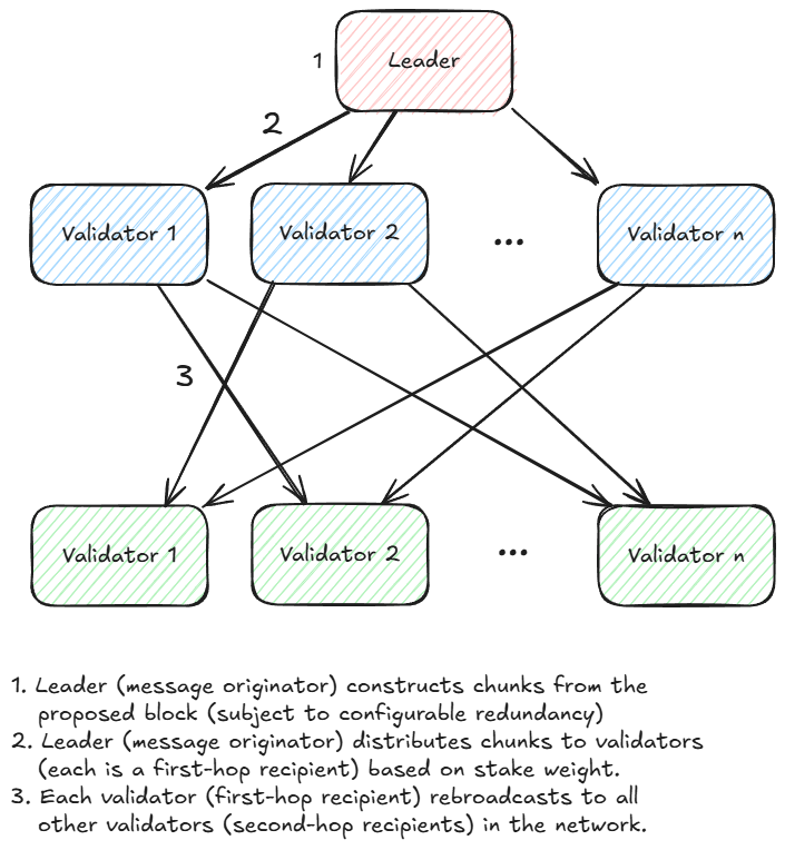 RaptorCast 用于从领导者向每个验证者发送经过擦除编码的数据块。