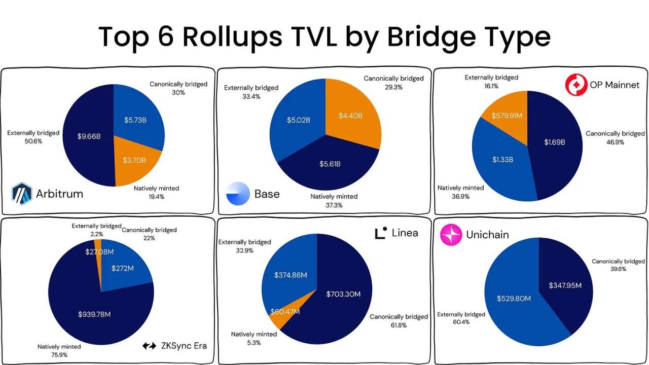 - 外部桥接占主导:如 Arbitrum 和 Unichain,用户追求快速退出与流动性,偏好第三方桥接。