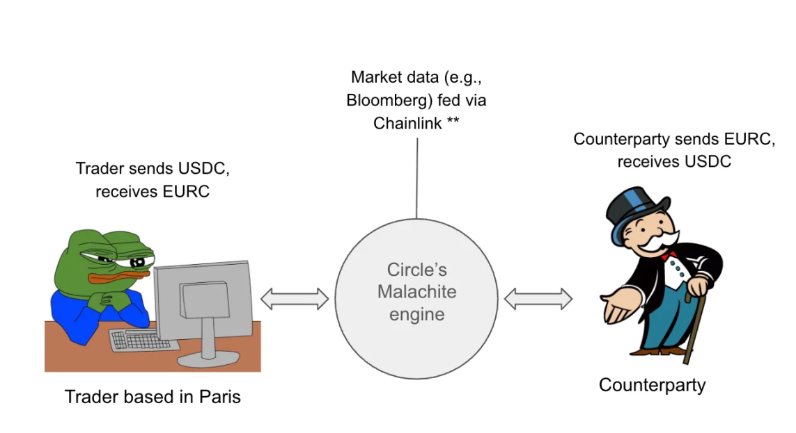 举个具体例子:一位巴黎的外汇交易者,可通过 Arc 区块链上的 USDC/EURC 交易对,借助 Malachite 外汇引擎完成 1000 万美元的美元兑欧元兑换。假设通过 Chainlink 预言机获取实时汇率(如 1 美元 = 0.85 欧元),整个交易可在 1 秒内完成 —— 将传统外汇交易「T+2」(交易后 2 天)的结算周期,缩短至「T+0」(实时结算)。这便是技术带来的变革。