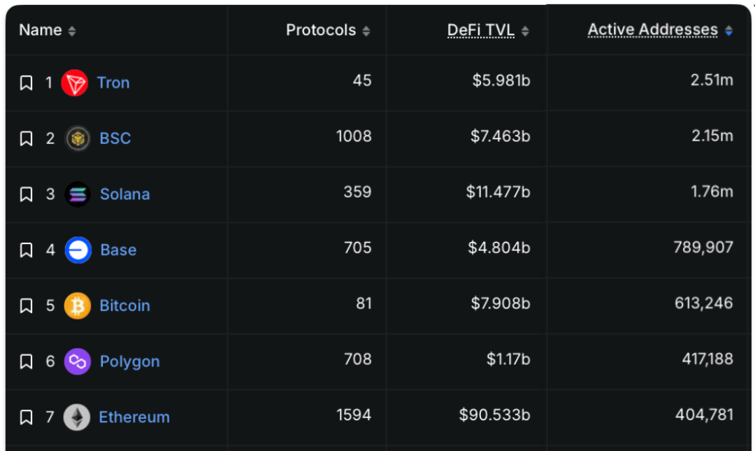 来自 Defillama 的数据显示,各区块链网络按活跃地址数排,TRON 以 250 万活跃地址 排在第一位,同时 TRON 的 DeFi TVL 也名列前茅,当然稳定币一哥 USDT 流通量在 TRON 也是排在首位,总体稳定币发行量领先于各大公链。总的来说,TRON 生态底蕴良好,肥沃的「土壤」培育出不俗的项目应用。