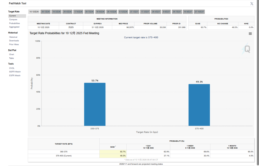 此次抛售的直接催化剂,是多位美联储官员发表的谨慎言论,暗示降息需谨慎。据芝商所(CME)数据,利率期货市场显示,降息概率已从一周前的超过70%骤降至50%左右。