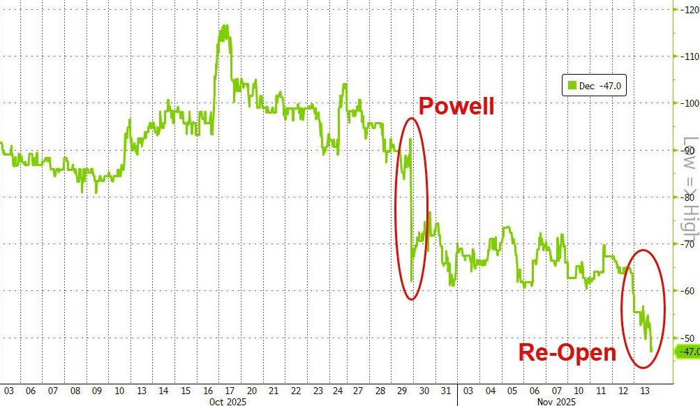 美国政府关门事件结束,经济数据推迟发布,投资者重估美联储12月降息前景,周四美股创一个月最大单日跌幅。