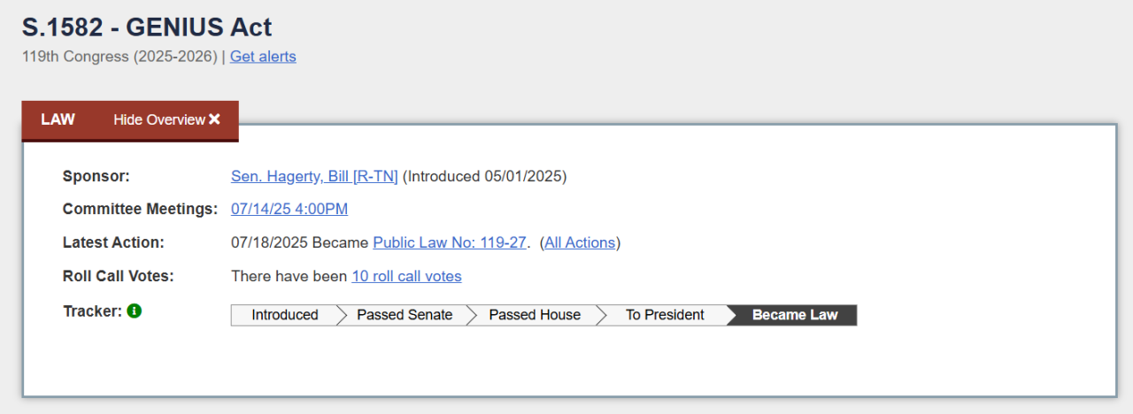 二、首部联邦稳定币法案:GENIUS Act