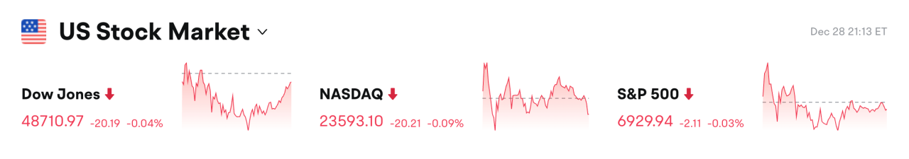 2、金十:年末聚焦美联储政策与板块轮动,美股冲刺历史新高。“动能显然站在多头一边,”Murphy & Sylvest Wealth Management高级财富顾问保罗·诺尔特表示,“除非发生外部突发事件,否则我认为股市阻力最小的路径仍是上行。”
