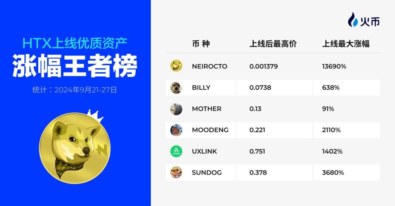 在社区MEME币方面,火币HTX同样表现突出。资产团队发掘了早期优质社区币种Neirocto,成为首家上线该币种的交易所。该币种上线后,最高涨幅达137倍,成为了许多投资者的财富密码。此外,火币HTX通过发掘其他潜力MEME币种,不断为用户创造出更多的投资机会和财富效应。