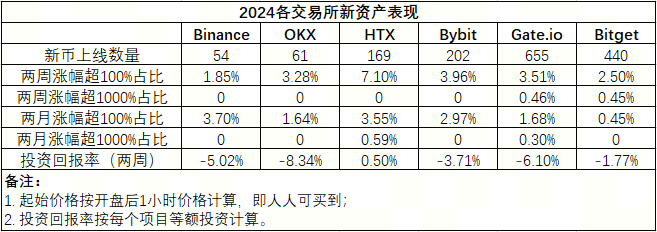 * 图片为网友整理2024各交易所新资产表现