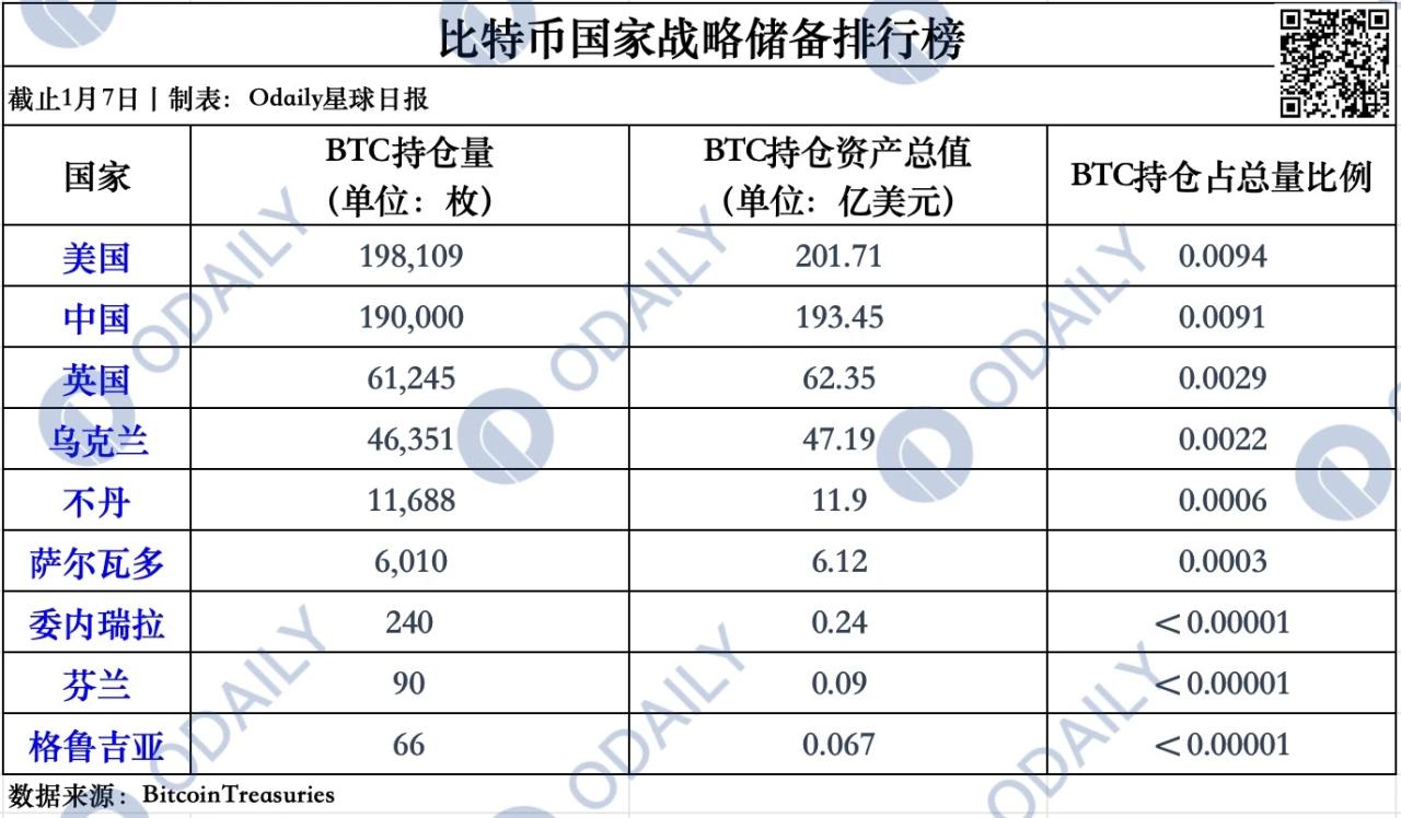 一览 BTC 国家战略储备排行榜,中美持仓量谁是第一?