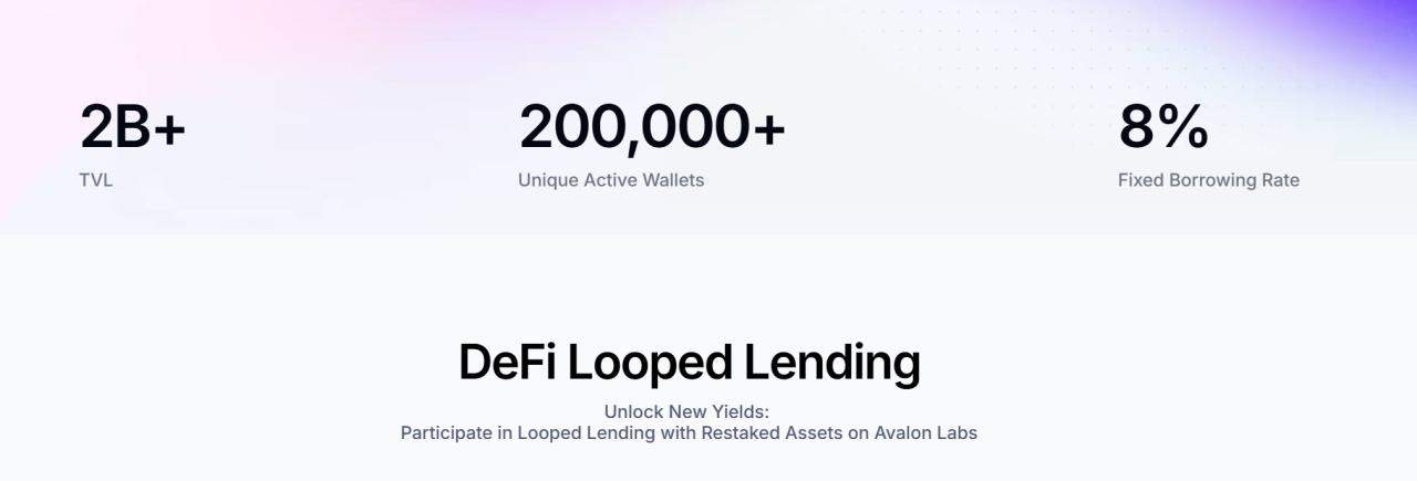 说白了这是一种基于借贷场景搭建稳定币使用的扩展,相当于为那些平日里沉睡的资产创建一个额外的流动性交易池,以 Avalon 为例,它的生态系统目前就有四个核心业务板块:基于比特币抵押的收益型稳定币 USDa;以 USDa 为基础的借贷协议;连接 DeFi 与 CeFi 的混合借贷平台;以及支持 BTC 质押的去中心化借贷协议。