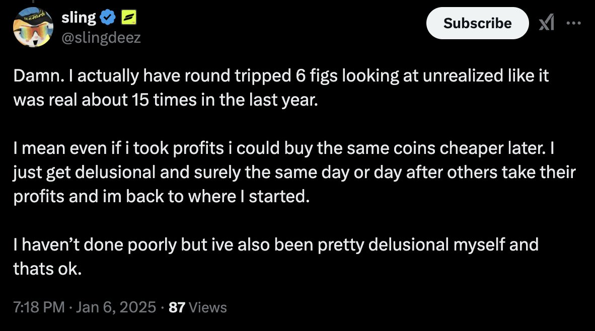 @slingdeez:“天啊,过去一年我大概有 15 次经历了六位数资金的“过山车”,总是把未实现的收益当成了已经到手的利润。