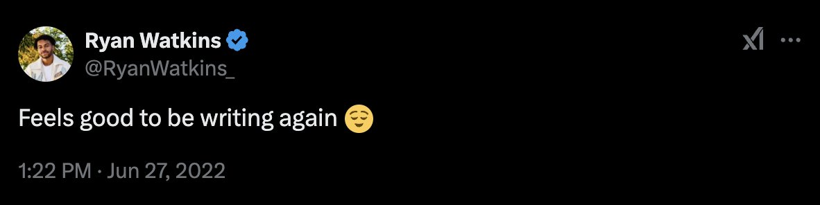@RyanWatkins:“再次提笔写作的感觉真好。”