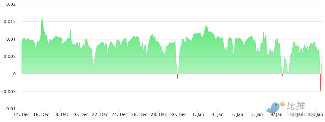 另外一个指标是永续合约资金费率(通常反映市场情绪)。尽管在 1 月 13 日,由于大量空头涌入,资金费率短暂转为负值,并伴随着 1.07 亿美元的多头爆仓。但随后迅速回升至月率 0.5% 左右,显示出市场并未出现持续的看跌情绪。