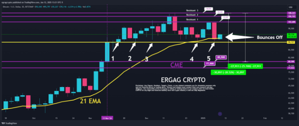 分析师认为,鉴于比特币目前的价格约为 94,000 美元,从这一水平下跌可能会导致大幅回调,可能会使跌幅高达 18% 以填补 CME 的这一缺口。