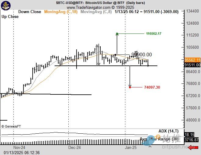 分析师表示,CME 88,500 美元和 77,500 美元之间存在缺口。当比特币期货价格在一个交易日结束和下一个交易日开始时出现差异时,就会出现 CME 缺口,这通常会造成比特币倾向于重新回到某个水平。如果比特币面临下行修正,这一缺口代表着潜在的看跌目标。