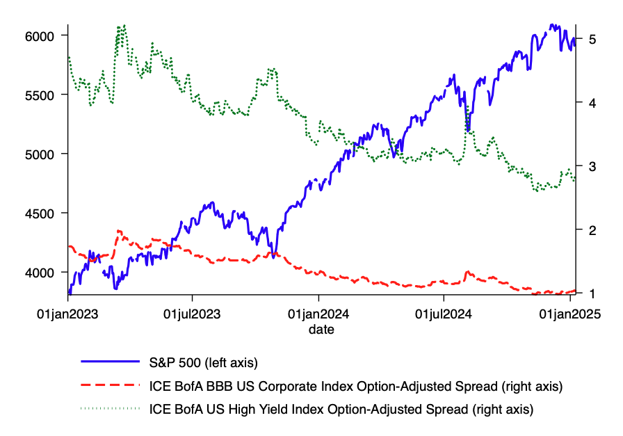 虽然政策利率很高,但金融环境实际上相当宽松。股市上涨和信贷利差收紧有效抵消了美联储的大部分紧缩政策。