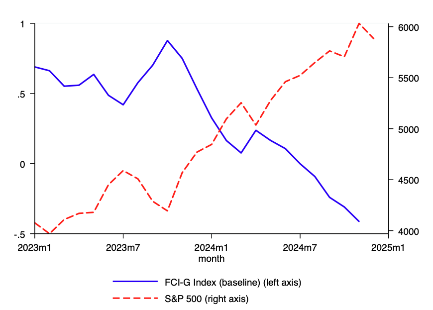 当前的情况符合这一框架:尽管利率较高,但宽松的金融条件正在支撑强劲增长,并可能阻止通胀回到目标水平。