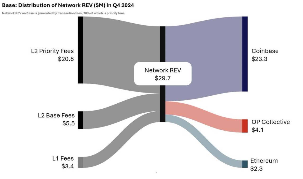 关于 Base,回到比特币原来的愿景,是有社区的所有权,注重个人和社区所有权。但 Base 的矛盾在于,从去年的数据看,它的网络费用大部分变成了 Coinbase 的利润,其中给以太坊主网的资金非常少,大部分还是被 Coinbase 留作己用。