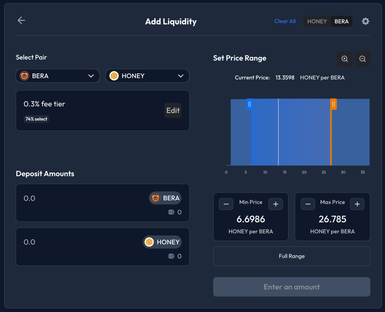 用户可以通过 CLAMM 池在狭窄的范围提供流动性,来更有效地耕作 $BGT。此外,Kodiak 也提供一个 Island 的功能,帮助用户自动重设和平衡 CLAMM 范围,减少管理流动性供给仓位的麻烦。而该功能利用 BEX 来重新平衡流动性,因此建立一个互补而非竞争关係。
