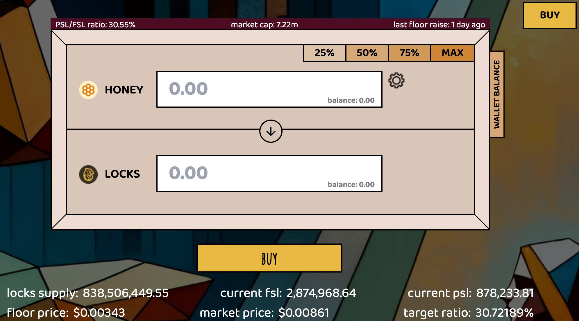 • Goldiswap:包含保证 Goldilocks 治理代币 $LOCKS 最低底价的 FSL 池 (Floor Supporting Liquidity Pool),以及用来交换 $HONEY 和 $LOCKS 的 PSL 池 (Price Supporting Liquidity Pool)。该结构使用 $LOCKS 在 PSL 池中交易产生的费用持续增加 $LOCKS 的底价。用户以 $LOCKS 作抵押可获得 $PORRIDGE 作为奖励,而 $PORRIDGE 赋予用户以最低价购买 $LOCKS 的权利,用户可以用 $LOCKS 作抵押借入 $HONEY。