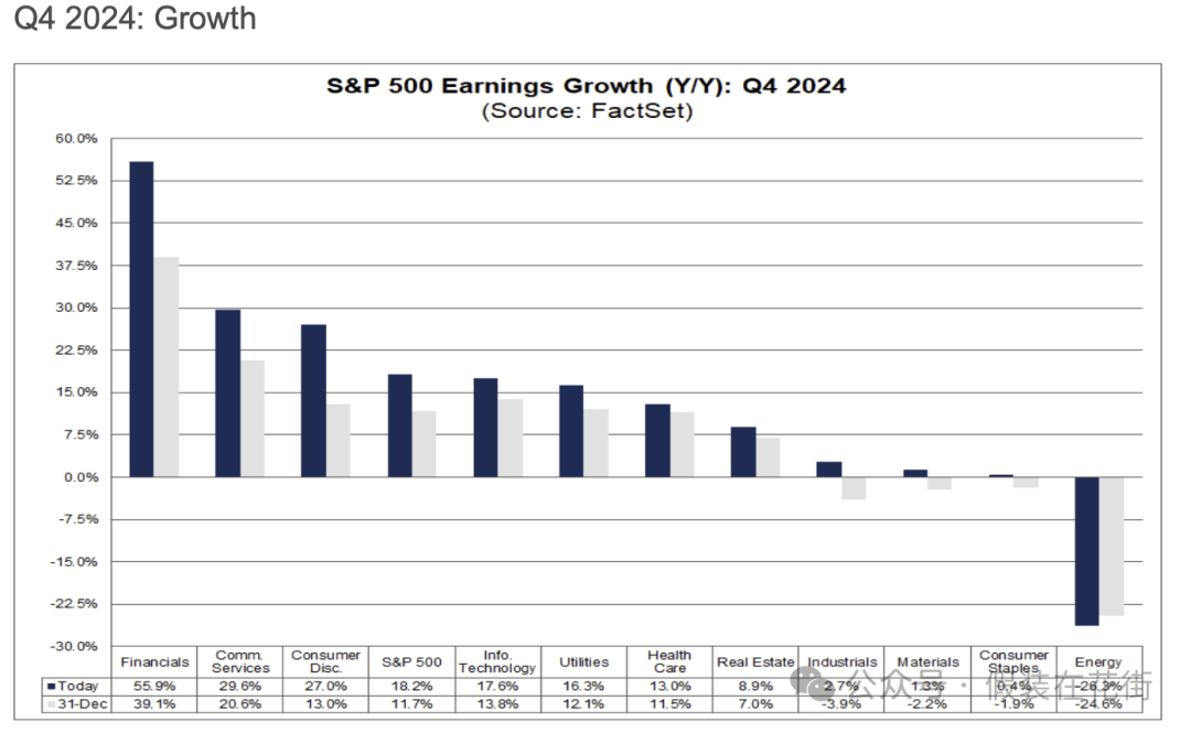 第四季度整体盈利同比增长18.2%,是自2021年以来最高的季度盈利增幅。营收增速5.3%,低于盈利增速,反映出企业利润率在提升,这是非常健康的迹象。(本文将集中探讨对估值影响更大的盈利所以会忽略营收)