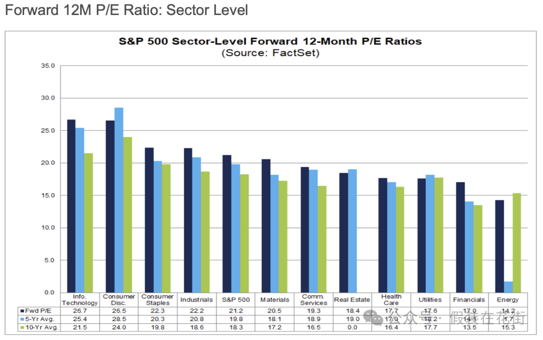 - 信息技术(约26.7倍)和可选消费(约26.5倍)板块的前瞻P/E目前最高,反映出投资者对其未来增长给予了较高预期溢价;