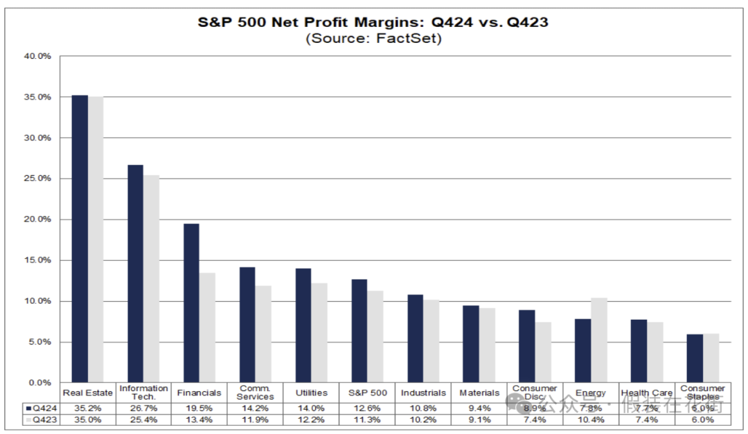 标普500指数第四季度净利润率升至12.6%, 高于上一季度的12.2%,也显著高于上年同期的11.3%。