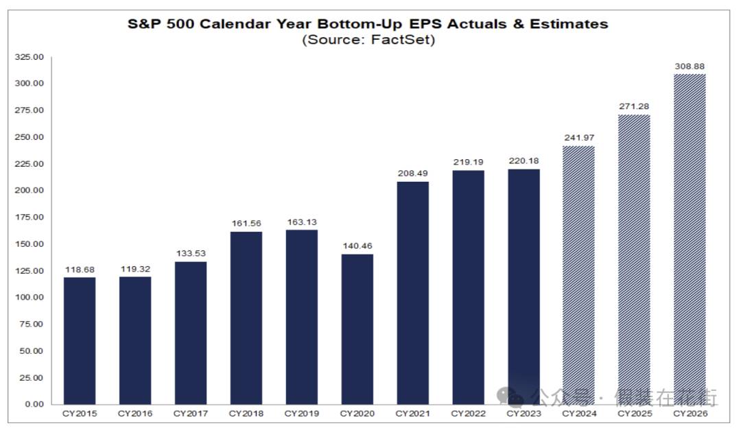当前市场普遍预期标普500指数盈利增速将在2025年和2026年保持高速增长。