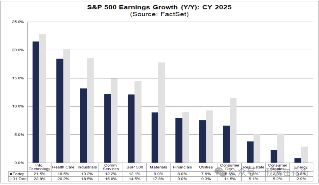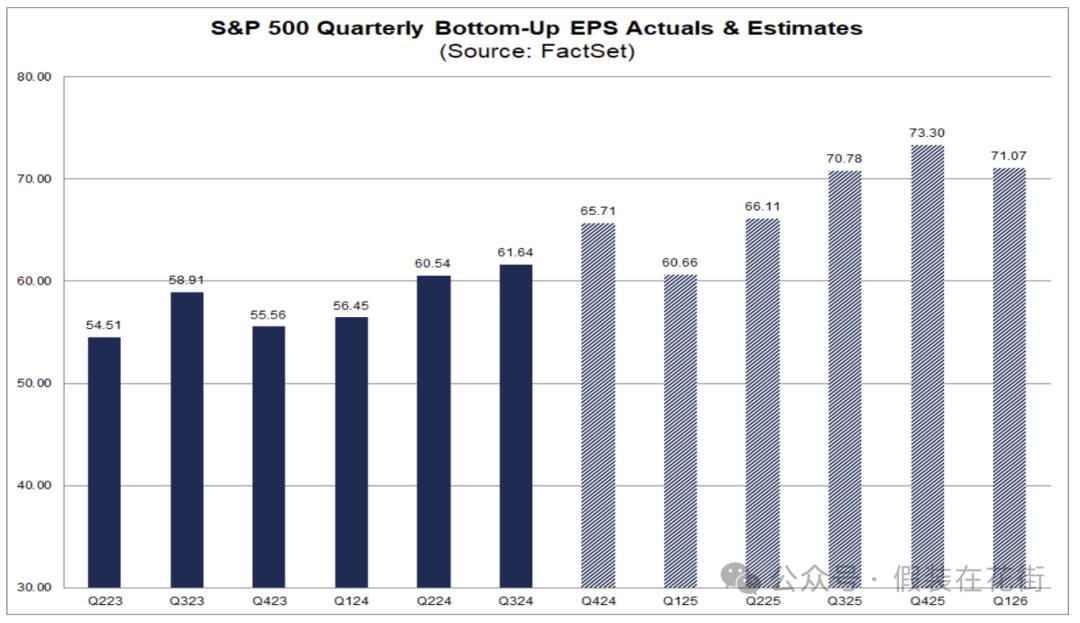 根据分析师一致预测,标普500企业盈利增速将从2024年的10.4%升至2025年的约12%,2026年则进一步升至约14%。