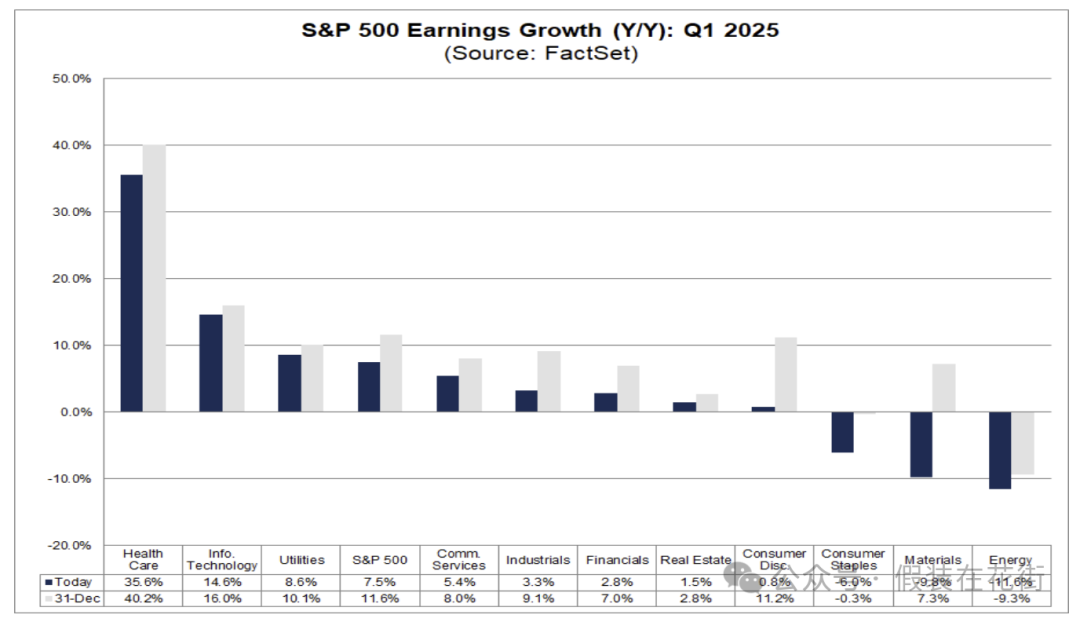 但需要注意的是,尽管全年向好,但2025年第一季度的S&P 500盈利预测特别低,最近企业自己公布的Q1业绩指引下降了3.5%,降幅超过了5年、10年和15年的平均水平。