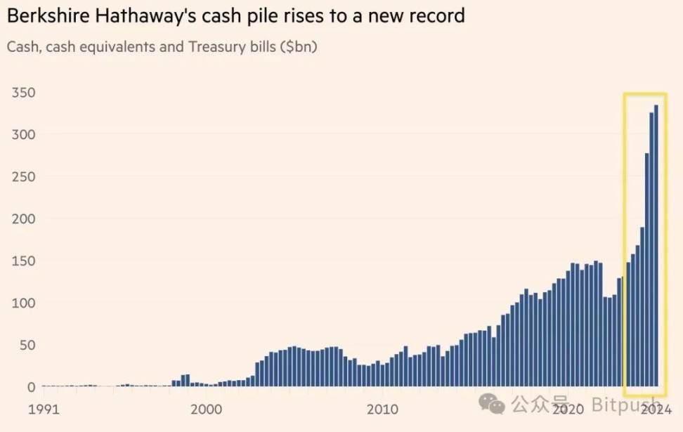 巴菲特旗下的伯克希尔·哈撒韦公司,近年来持续减持股票,规模高达数十亿美元,转而囤积巨额现金。
