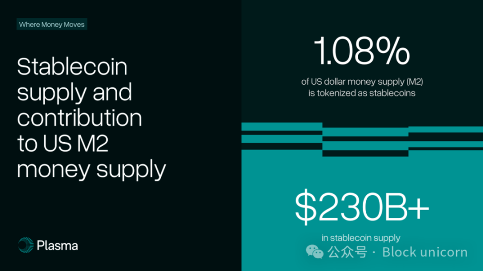 目前,稳定币占美元 M2 供应的 1.08% 以上。