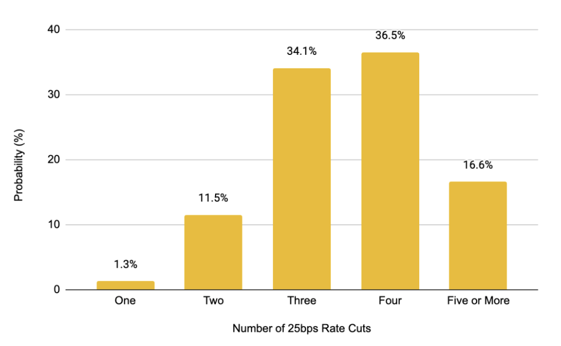 图8:市场对2025年降息预期持续升温,目前预期将有4次25个基点的降息——远高于此前仅1次的预期