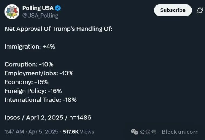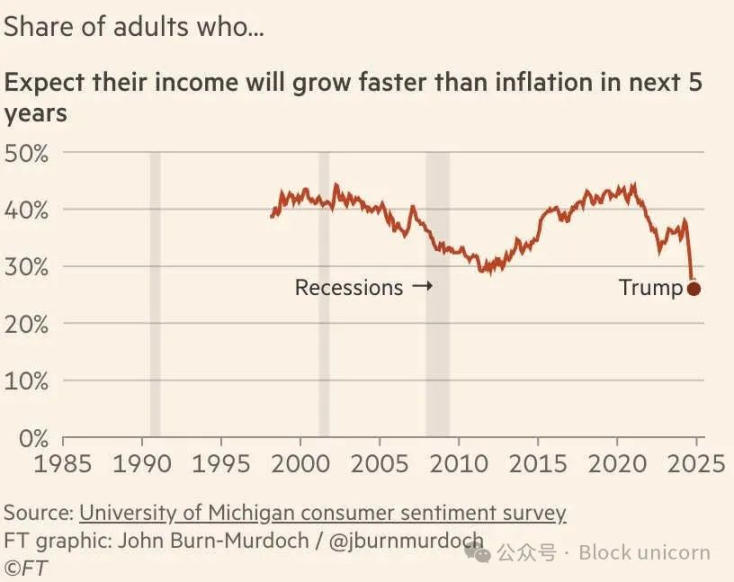 不仅仅是股市。大多数美国人预计关税将对实体经济产生负面影响,意味着更高的失业率和收入下降: