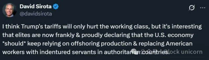 幸运的是,应该很容易以最大力度攻击特朗普的关税,而无需谈论「新自由主义」或其他大意识形态概念。他们可以这么说:关税将压垮美国工人阶级;他们也可以这么说:关税将大大加速美国的去工业化,让工厂工人失业;他们甚至可以这么说:关税将使中产阶级更穷,提高失业率,摧毁退休储蓄,侵蚀购买力。