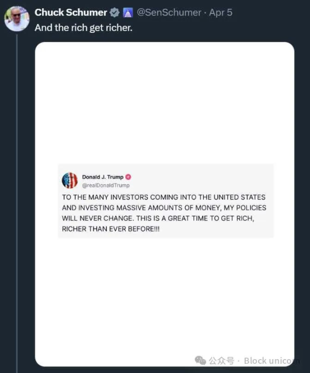 坦白说,这太疯狂了。从来没有哪位总统像特朗普这样故意对股市造成破坏、而且很快就会对美国经济造成破坏。在过去一个世纪的政策失误中,只有伊拉克战争可以与之相提并论,而那场灾难是多年逐步展开的。民主党人现在有一个绝佳的机会,从每个屋顶上猛烈抨击特朗普,乘着一波前所未有的愤怒浪潮,在 2026 年中期选举中取得国会全面胜利。然而,他们却发布平淡的声明,陷入细枝末节,让共和党人带头捍卫美国繁荣,抵御他们的疯狂「国王」。