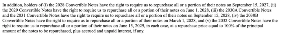 (iii) 2030A 及 2031 年可转换票据持有人有权于 2028 年 9 月 15 日要求回购;