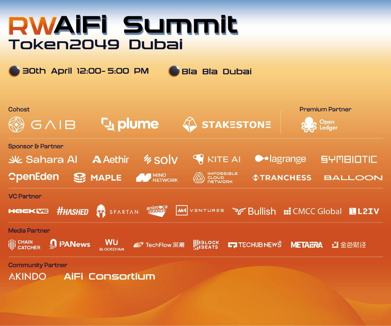 由 GAIB、Plume 和 StakeStone 主办的 RWAiFi Summit 2025,已于 4 月 30 日在迪拜 Token2049 期间圆满落幕。