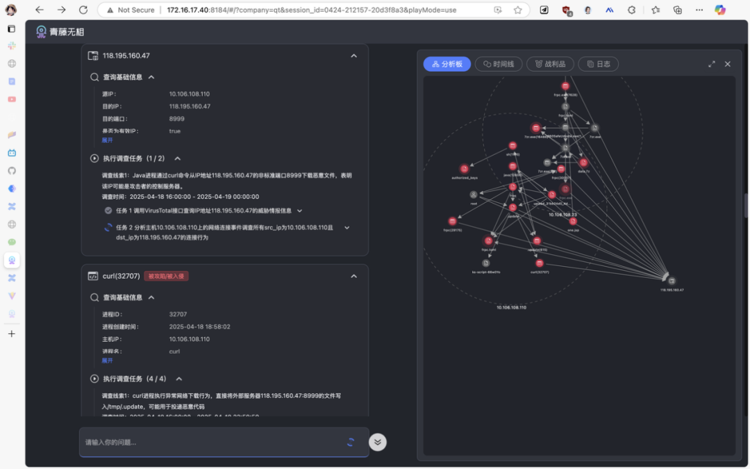通过关联分析日志、文本、流量等异构数据,系统能在攻击者构建完整攻击链前捕捉 APT 活动的蛛丝马迹。更关键的是,其决策过程的可视化推理解释,让传统工具「知其然不知其所以然」的黑盒告警成为历史——安全团队不仅能看见威胁,更能理解威胁的演化逻辑。