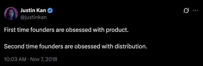 「首次创业者往往执着于产品打磨,而二次创业者则更看重分销渠道。」——Justin Kan,Twitch 联合创始人