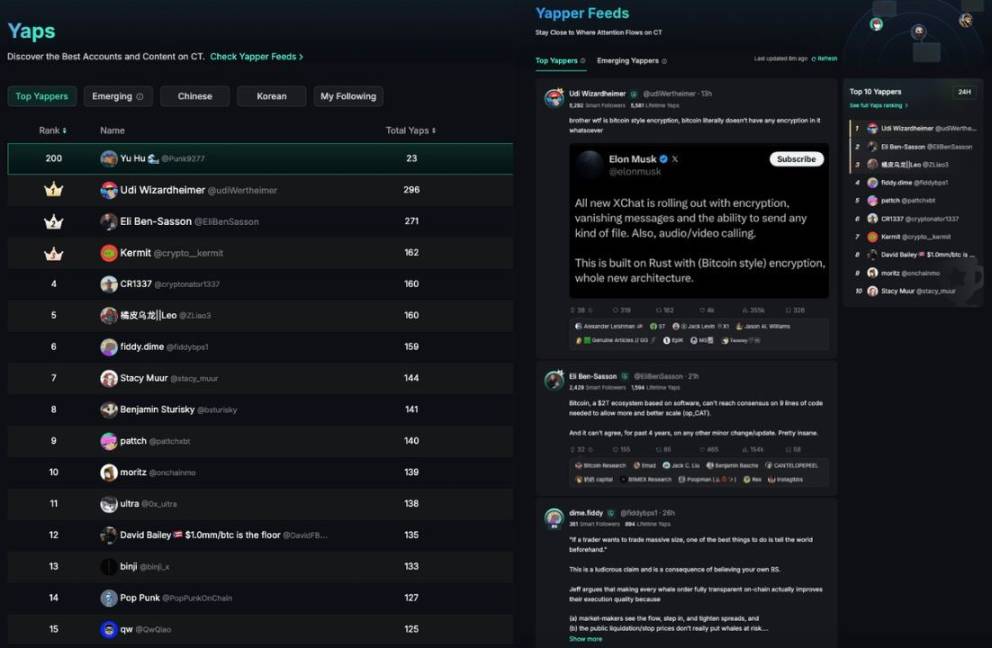 值得注意的是,各项目 Yapper 排行榜拥有自主加权机制 —— 可按洞察力、情绪匹配度等多维定制奖励规则。