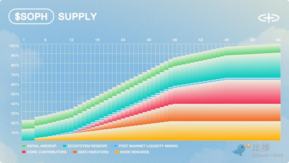 在去年上周的代币生成事件(TGE)之后,流通量为 20 亿枚代币,最大供应量为 100 亿枚,$SOPH 目前交易价格略低于每枚 0.05 美元,使该项目的市值达到 9600 万美元,完全稀释估值为 4.79 亿美元。