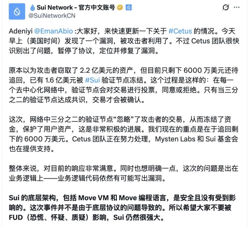 Cetus 真的「追回」1.6 亿美元被盗资金了吗?