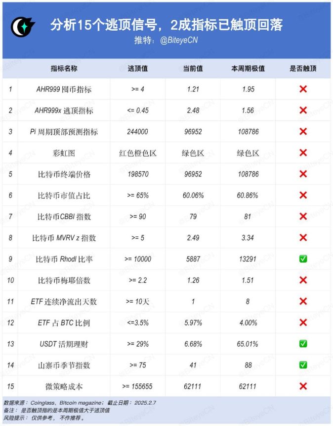 加密市场需要逃顶了吗?近 2 成指标已触顶回落