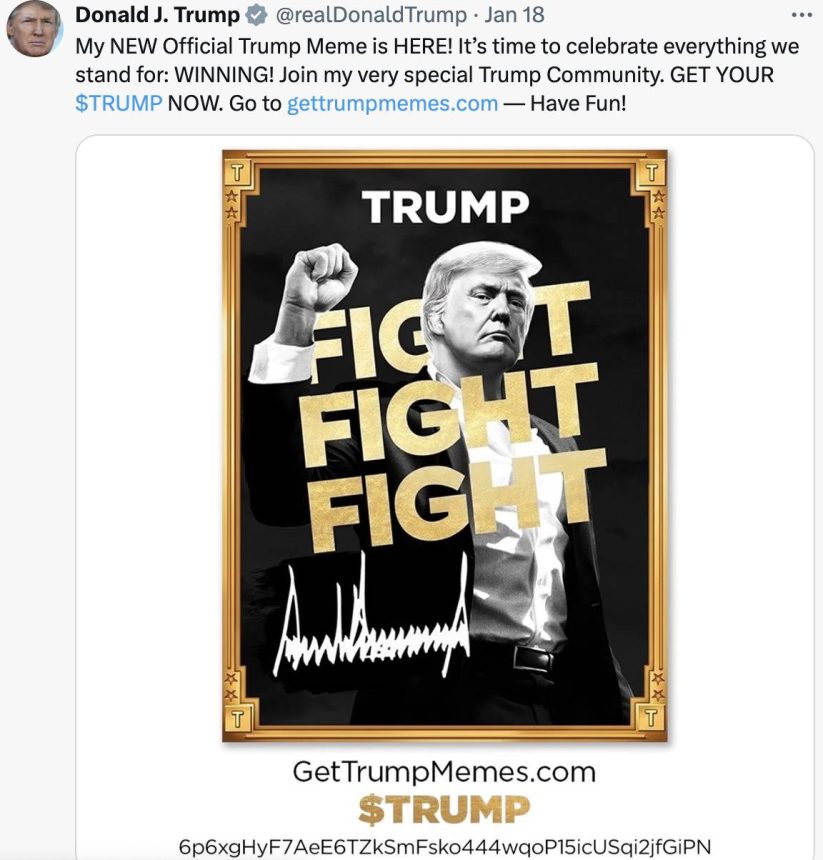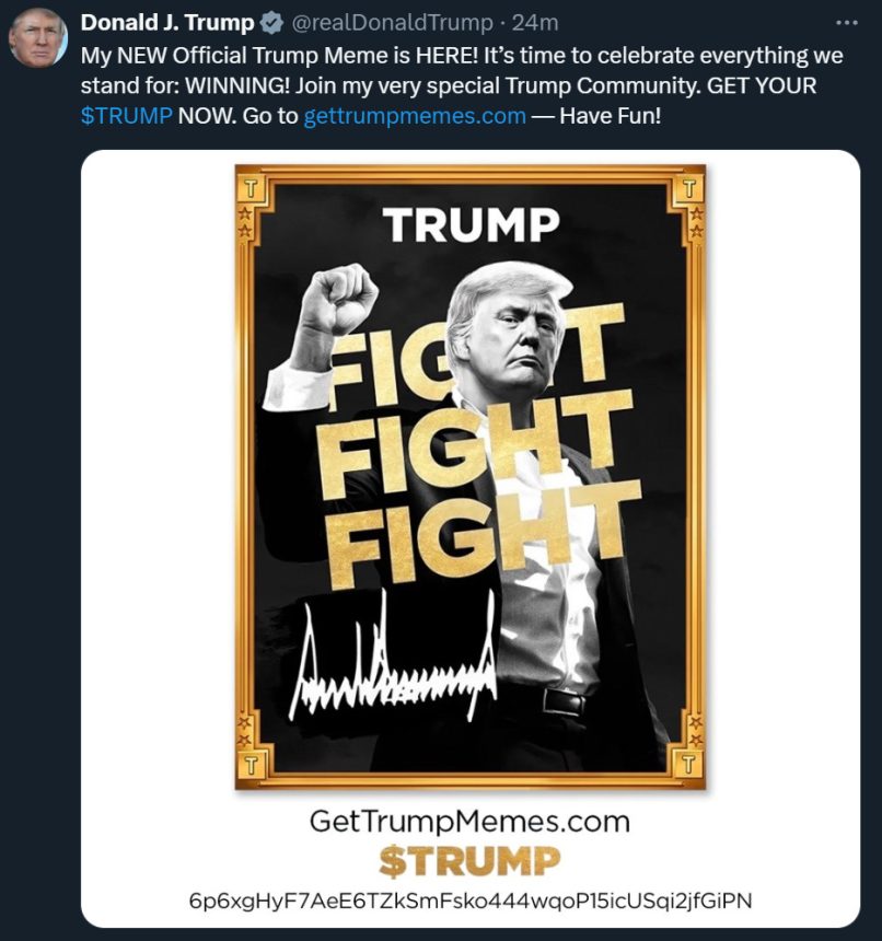 特朗普突然发行 Meme 币 TRUMP,身价暴涨数倍