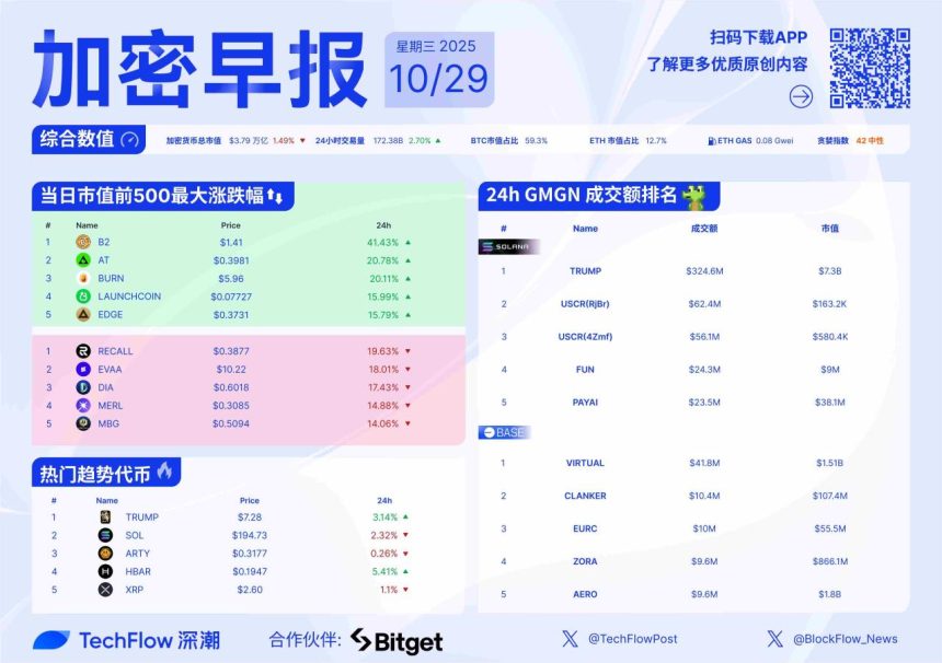 加密早报:沪指重回 4,000 点,特朗普旗下 Trump Media 进军预测市场