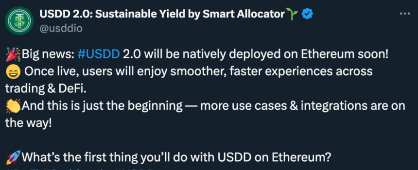 USDD 2.0 正式部署至以太坊,稳定币「黑马」狂撒百万激励